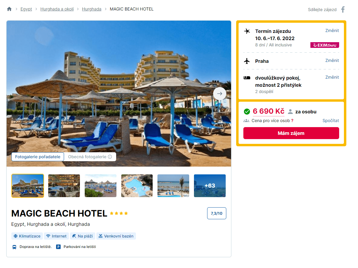 Sníte o dovolené v zemi faraonů a velbloudů? Pak pro vás máme skvělou nabídku. Již za pár dní se můžete vydat do Egypta a užít si dovolenou ve 4hvězdičkovém hotelu v letovisku Hurghada. Kompletně zařízený zájezd pořídíte za skvělých 6 690 Kč. Cena zahrnuje ubytování v hotelu na 8 dní se stravou All Inclusive, zpáteční letenky z Prahy, letištní transfery a služby delegáta. Tento menší hotel leží přímo u pláže. K dispozici budete mít zdarma lehátka, slunečníky i ručníky. Rady a tipy na výlety najdete v našem online průvodci Egyptem.