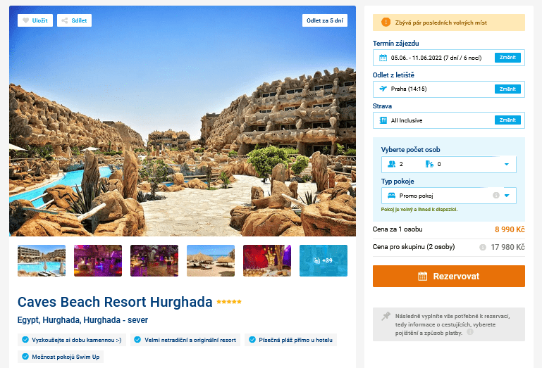 Dovolenou v hotelu Caves Beach Resort Hurghada v termínu 5.6. – 11.6. 2022 můžete rezervovat zde >>