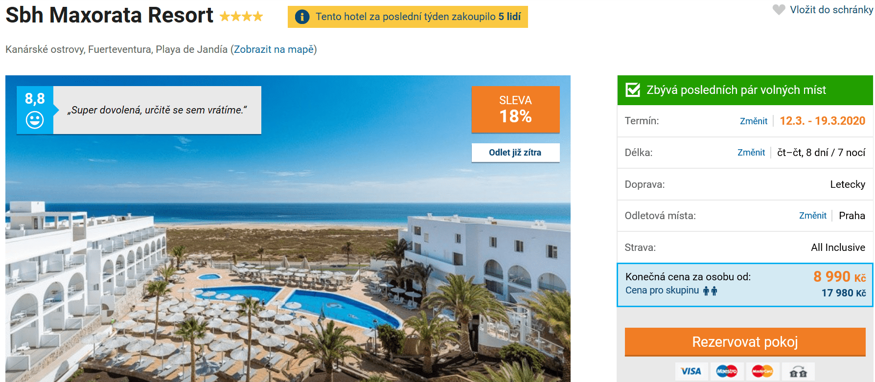 Již dlouho uvažujete nad návštěvou Kanárských ostrovů, nemůžete se však rozhodnout, kam přesně zamíříte? V rozhodování by vám tedy mohla pomoci aktuální akční nabídka CK Čedok za skvělých 8990 Kč! V této ceně máte týdenní zájezd na Fuerteventuru s odletem z Prahy, dopravu na místě, služby delegáta, ubytování ve výborně hodnoceném 4* hotelu a stravování formou All Inclusive. Podrobnější informace o ostrově se dozvíte v našem podrobném průvodci zdarma. Pozor, odlet je již zítra, proto s rezervací určitě neváhejte!