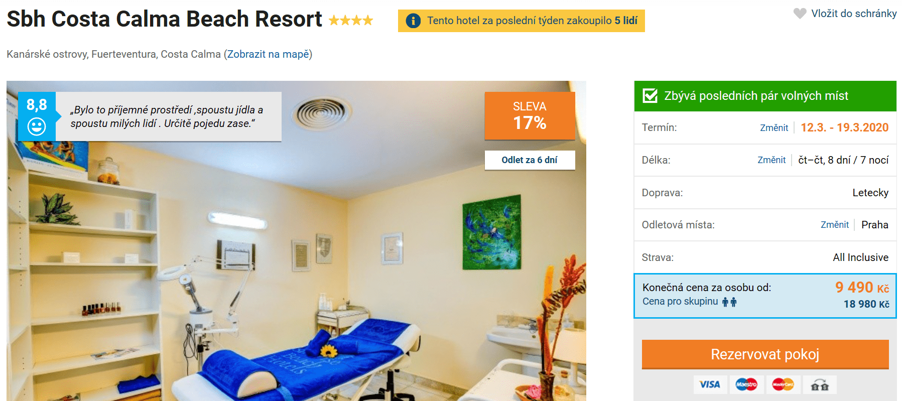 Další akční zájezd vás může tentokrát zavést na Kanárské ostrovy, konkrétně pak na Fuerteventuru, a to za skvělých 9490 Kč! V této ceně máte zpáteční letenku z Prahy, dopravu na místě, služby delegáta, ubytování ve výborně hodnoceném 4* hotelu a stravování formou All Inclusive na 8 dní. Podrobného průvodce po Fuerteventuře zdarma si můžete přečíst zde. Zájezd je téměř vyprodaný, proto v případě zájmu s rezervací určitě neotálejte!