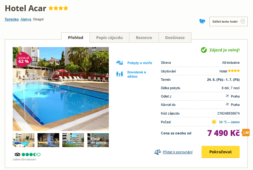 Dovolenou v hotelu Acar v termínu 24.6. – 1.7.2022 si můžete prohlédnout a rezervovat zde >> (recenze hotelu na Invii najdete zde >>)