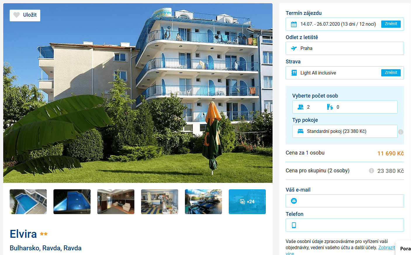 Jste připraveni vyrazit hned zítra užít si na dalších 13 dní bezstarostné dovolené se vším všudy? Pak si nenechte ujít akční nabídku cestovní kanceláře za skvělých 11 690 Kč! V této ceně máte zpáteční letenku z Prahy, dopravu na místě, služby delegáta, ubytování a stravování formou All Inclusive. Více informací o Bulharsku se dočtete v našem podrobném průvodci zdarma.