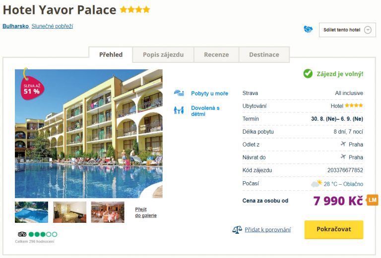 Co takhle již tuto neděli vyrazit k moři a užít si bezstarostnou dovolenou na sluncem vyhřátých plážích? Jestli vás tato nabídka láká, využijte akční nabídky cestovní kanceláře za 7990 Kč! V této ceně máte zpáteční letenky z Prahy, dopravu na místě, služby delegáta, ubytování ve 4* hotelu a stravování formou All Inclusive na celých 8 dní. Inspiraci na výlety po okolí pak načerpejte v našem podrobném průvodci zdarma.