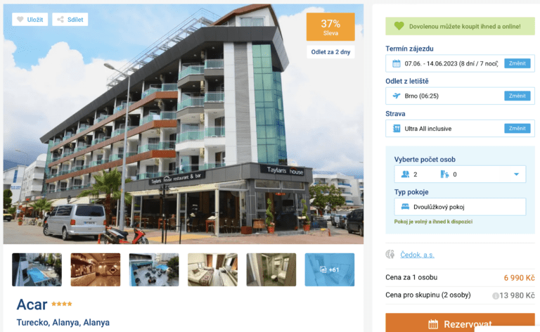 Zájezd do hotelu Acar v termínu 7.6. – 14.6. 2023 můžete rezervovat zde.