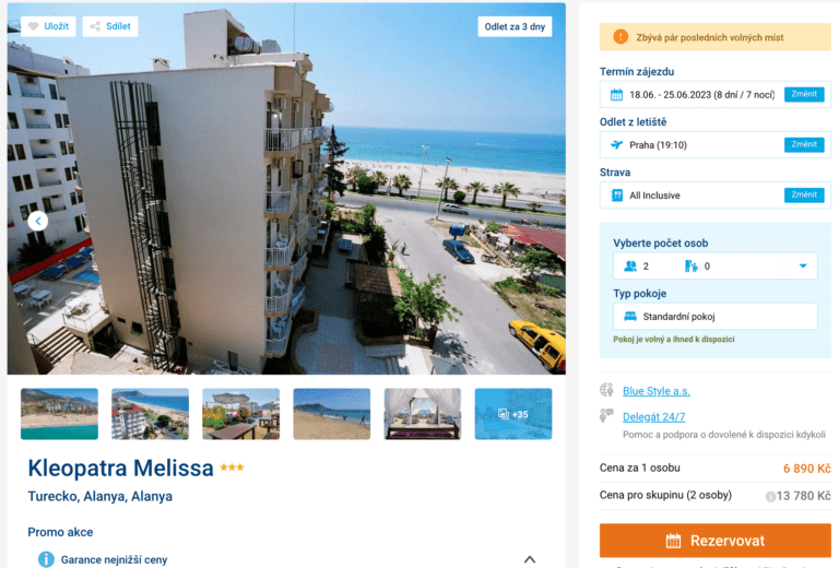 Toužíte po tureckých plážích? Potom máme tip na zájezd přesně pro vás. S CK Blue Style můžete strávit 7 nocí v hotelu Kleopatra Melissa v tureckém městě Alanya. Ubytování s all inclusive, letecká doprava (z Prahy) a služby delegáta vás přijdou na pouhých 6890 Kč. A k moři to budete z hotelu mít jen 30 metrů! Před odletem si nezapomeňte přečíst našeho podrobného průvodce Tureckem.