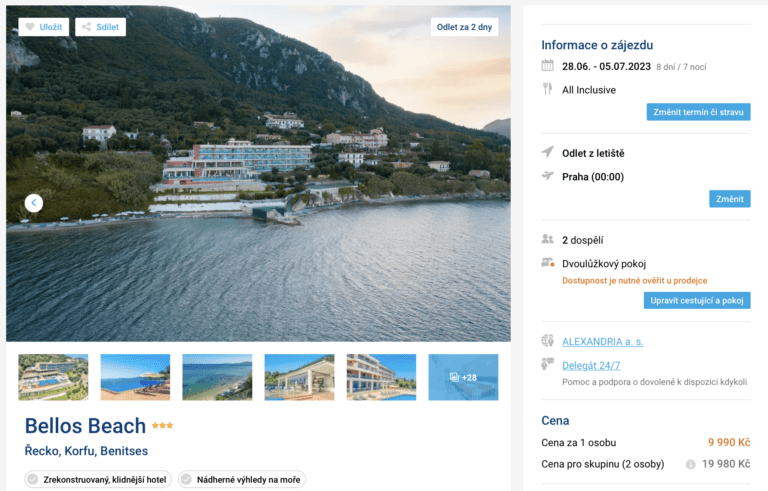 Lákají vás řecké ostrovy? S naším dnešním tipem můžete již za pár dní vyrazit na ostrov Korfu! Zájezd do letoviska Benitses aktuálně pořídíte za cenu 9 990 Kč. V té jsou zahrnuty letenky (odlet z Prahy), letištní transfery v místě, ubytování na 8 dní, all inclusive stravování a služby delegáta. Hotel má trochu slabší hodnocení a je tak ideální pro méně náročné klienty. Před cestou nezapomeňte nakouknout do našeho průvodce ostrovem Korfu, ve kterém najdete spoustu inspirace pro váš itinerář.