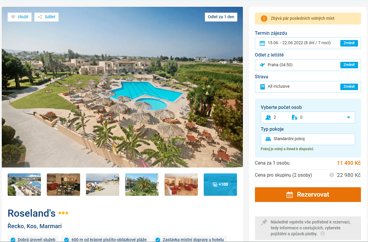 Zájezd do hotelu Roseland‘s v termínu 15.6. – 22.6. 2022 si můžete prohlédnout a rezervovat zde >>