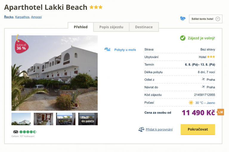 Načerpejte energii na poklidném řeckém ostrově Karpathos. V nabídce cestovní kanceláře se objevil akční zájezd na tento ostrov za cenu 11 490 Kč. V ceně jsou zahrnuty zpáteční letenky z Prahy, letištní transfer, ubytování ve výborně hodnoceném aparthotelu a služby delegáta. Svou dovolenou na Karpathosu můžete trávit i aktivněji, můžete navštívit malebná městečka, ochutnat místní speciality ve vyhlášených řeckých tavernách či jen lenošit na krásných plážích. Zájezd se koná v termínu 6.8. – 13.8. 2021. Před cestou se můžete inspirovat v našem online průvodci, ve kterém najdete inspiraci na zajímavá místa.