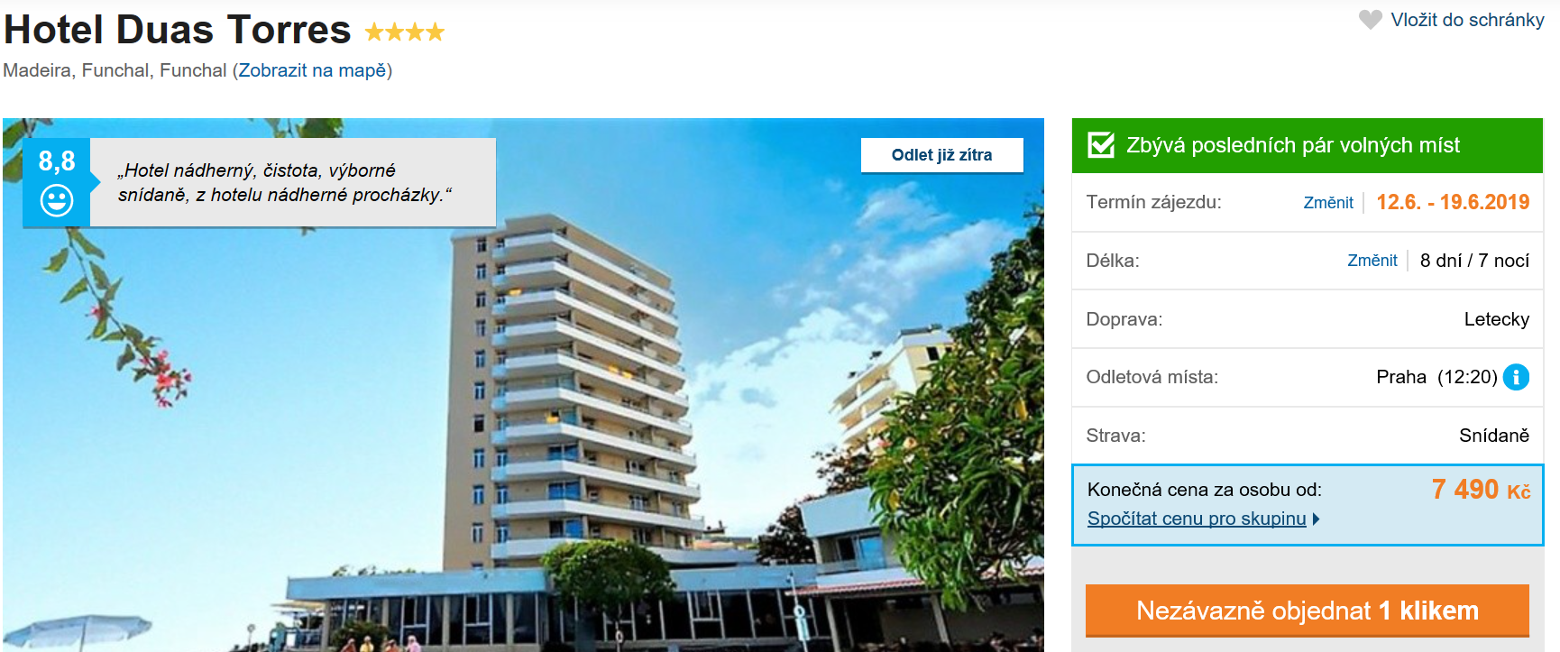 Léto je tu co nevidět, ale vy byste si stejně rádi prodloužili jarní dny? Pak se vydejte na ostrov věčného jara – Madeiru! Zájezd přes cestovní kancelář Čedok nyní zakoupíte již za skvělých 7490 Kč. V této ceně máte zpáteční letenku z Prahy, dopravu na místě, služby delegáta, ubytování ve výborně hodnoceném hotelu (na Invii získal 8,8/10) a snídaně, a to po celých 8 dní!