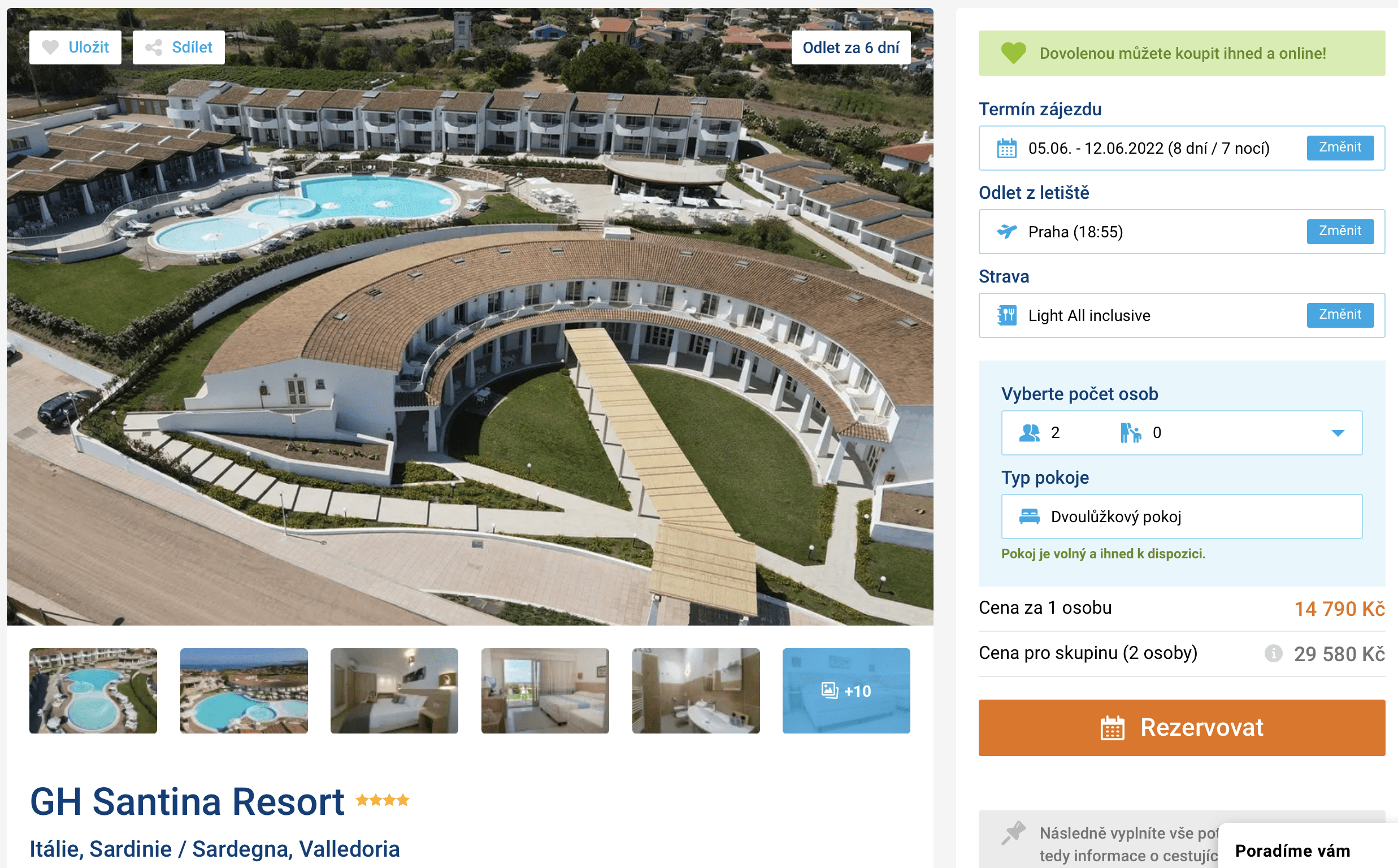 Dopřejte si parádní dovolenou na italském ostrově Sardinie! V nabídce CK se objevil akční zájezd na tento ostrov za cenu 14 790 Kč. Za tuto cenu si můžete užít 8denní dovolenou ve 4* resortu. V ceně je zahrnuta zpáteční letenka z Prahy, letištní transfery v místě, ubytování ve 4* hotelu, stravování formou light all inclusive a služby delegáta. Před cestou nezapomeňte nahlédnout do našeho online průvodce Sardinií, ve kterém najdete tipy na výlety a informace o ostrově.