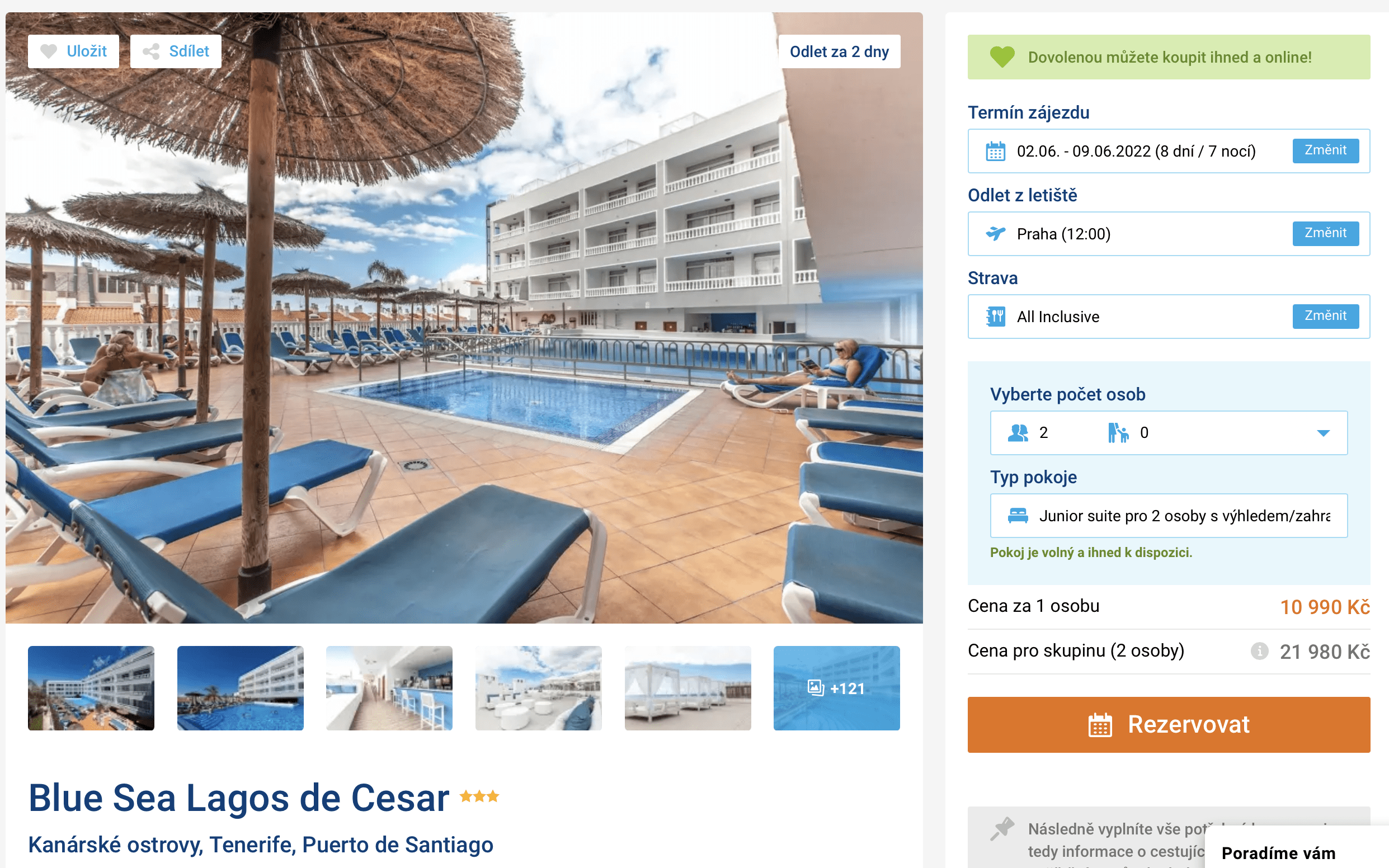Vydejte se o letošní dovolené na Kanárské ostrovy! V nabídce cestovní kanceláře se objevil last minute zájezd na ostrov Tenerife, který je proslulý svou krásnou přírodou a vulkanickými plážemi. Dovolenou v letovisku Puerto de Santiago můžete aktuálně rezervovat za cenu 10 990 Kč. Tato cena zahrnuje zpáteční letenky z Prahy, letištní transfery v místě, ubytování, stravování formou all inclusive a služby delegáta.Výborně hodnocený hotel je situován nedaleko centra letoviska i vulkanické pláže. Před cestou se nezapomeňte inspirovat v našem online průvodci tímto ostrovem, ve kterém najdete tipy na výlety a informace o ostrově.