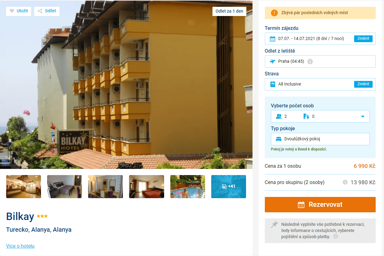 Lákají vás široké pláže, průzračně čisté moře a zajímavé památky? V tom případě je pro vás dovolená v tureckém letovisku Alanya tou správnou volbou. Odlet je již zítra, takže neváhejte, zařiďte vše potřebné a zaleťte si v termínu 7.7. – 14.7. 2021 načerpat trochu toho vitamínu D. V ceně 6 990 Kč jsou zahrnuty zpáteční letenky s odletem z Prahy, letištní transfer, ubytování ve 3* hotelu, stravování formou All Inclusive a služby delegáta! Informace o Turecku a jednotlivých letoviscích si můžete přečíst v našem online průvodci.
