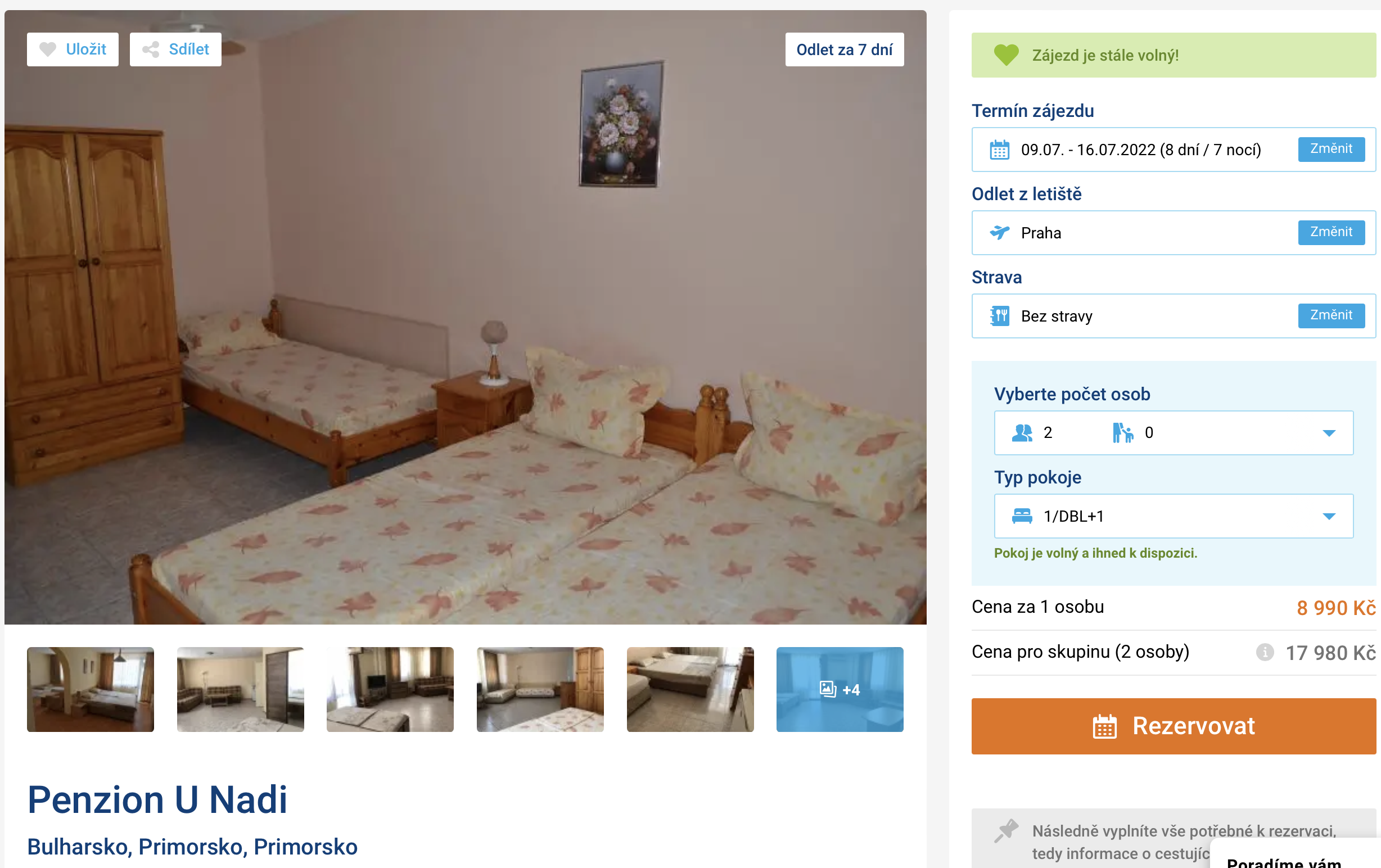 Hledáte last minute zájezd na druhý prázdninový týden? V tom případě by vás mohla zaujmout právě tato nabídka! Za cenu 8 990 Kč se můžete podívat do bulharského letoviska Primorsko. Skvěle hodnocený penzion se nachází v klidnější části letoviska a v blízkosti dvou pláží. Cena zájezdu zahrnuje letenky (odlet z Prahy nebo Brna), letištní transfery v místě, ubytování na 7 nocí a služby delegáta. Před cestou se určitě nezapomeňte inspirovat v našem podrobném průvodci Bulharskem, ve kterém najdete rady pro vaši cestu a tipy na výlety.