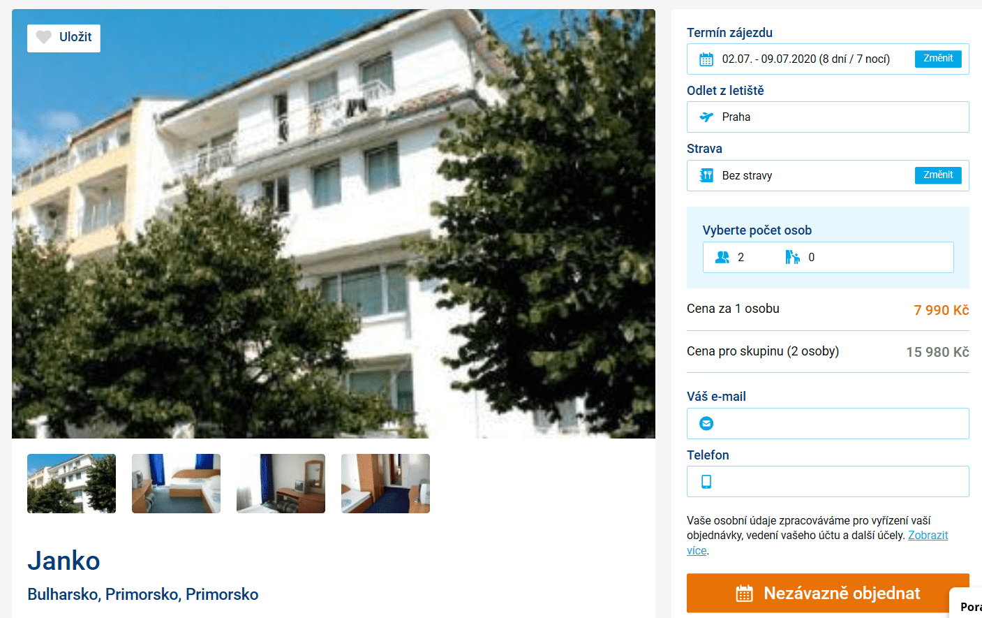 Plánovali jste-li dovolenou u moře na státní svátky na začátku července, mohla by vás zaujmout akční nabídka cestovní kanceláře za skvělých 7990 Kč. Za tuto cenu se můžete vydat na osm dní do Bulharska, konkrétně do letoviska Primorsko. V ceně zájezdu máte zpáteční letenku z Prahy, dopravu na místě, služby delegáta a ubytování. Více informací o cestovní po Bulharsku se dozvíte v našem podrobném průvodci zdarma.