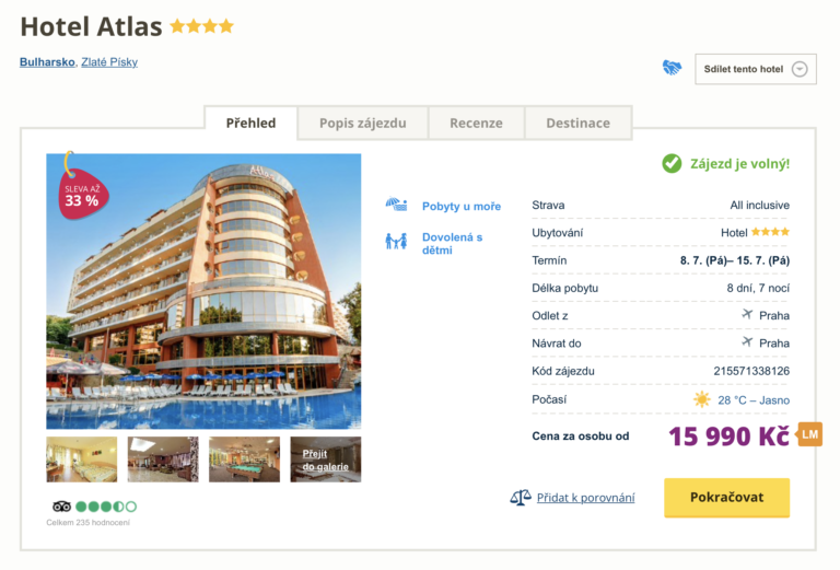 Dovolenou v hotelu Atlas v termínu 8.7. – 15.7. 2022 můžete rezervovat zde >>  (recenze hotelu najdete zde >>)