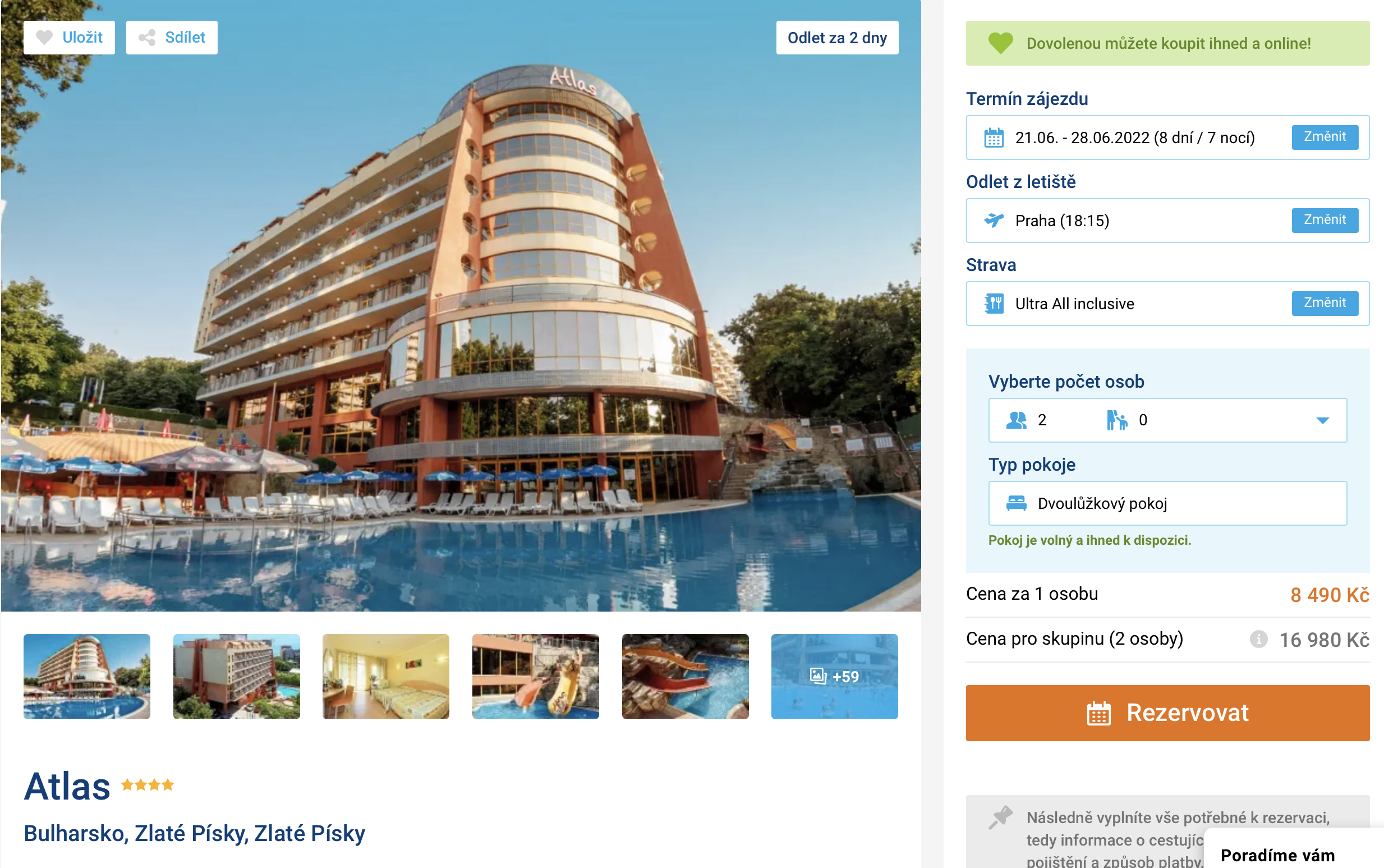 Plánujete v následujících dnech dovolenou, ale stále vám žádný zájezd nepadl do oka? V tom případě by vás mohla zaujmout následující nabídka, díky které se můžete vydat do bulharského letoviska Zlaté Písky za cenu 8 490 Kč. V této ceně jsou zahrnuty letenky (odlet z Prahy), letištní transfery v místě, ubytování ve 4* hotelu, stravování formou Ultra ALL INCLUSIVE a služby delegáta. Výborně hodnocený hotel se nachází nedaleko písčité pláže a nabízí bazén i skluzavky pro malé děti. Před cestou nezapomeňte nakouknout do našeho podrobného průvodce Bulharskem, ve kterém najdete tipy na výlety.