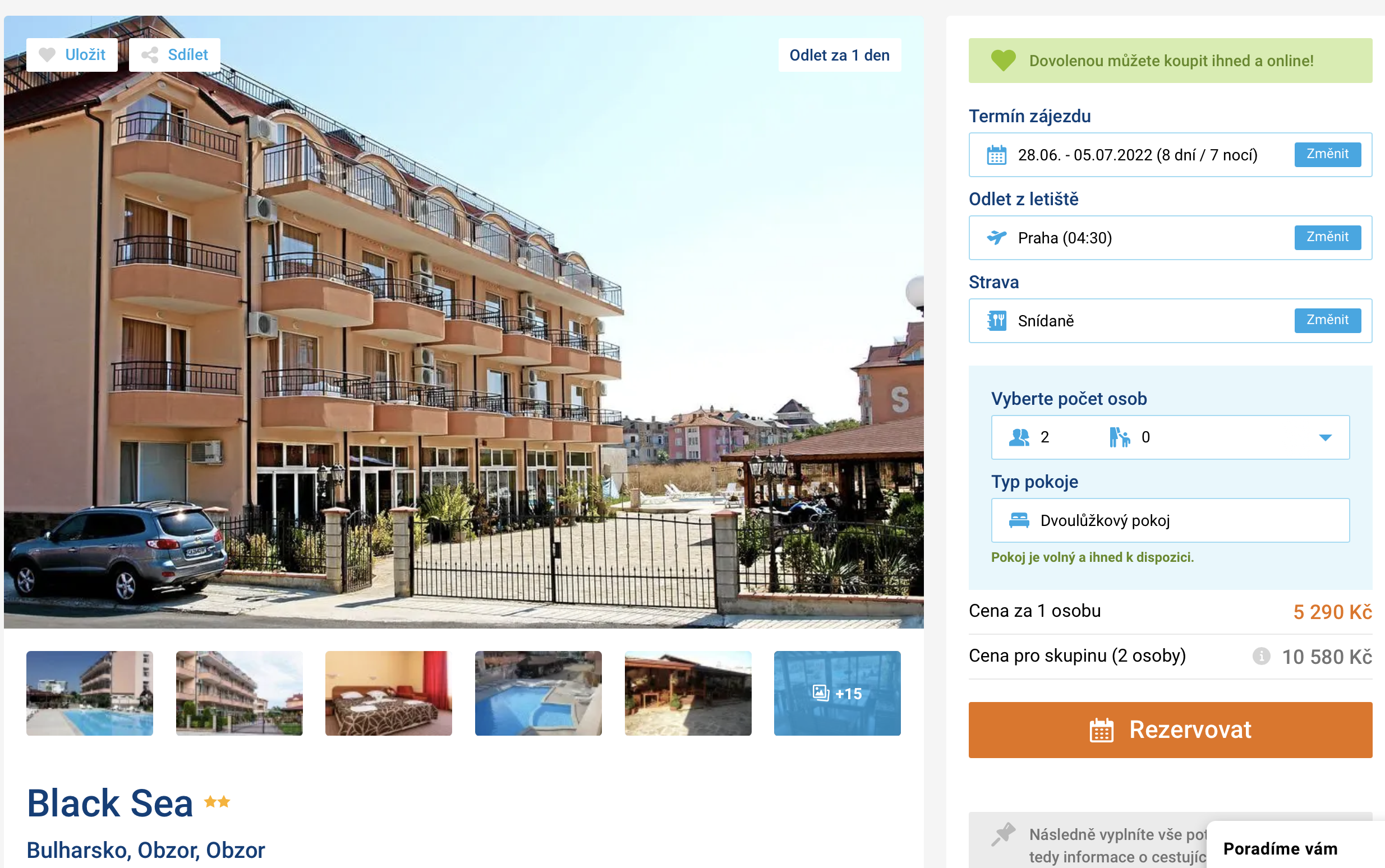 Pokud plánujete v nejbližších dnech vyrazit k moři, ale stále vyčkáváte na výhodný zájezd, mohl by vám padnout do oka náš další dnešní tip. Zájezd do bulharského letoviska Obzor můžete pořídit za cenu 5 290 Kč. V této ceně jsou zahrnuty letenky (s odletem z Prahy), letištní transfery v místě, ubytování v hotelu, snídaně a služby delegáta. Oblíbený rodinný hotel se nachází nedaleko rozlehlé písčité pláže, přibližně půl kilometru od centra letoviska. Před cestou určitě nakoukněte do našeho průvodce Bulharskem, ve kterém najdete rady a tipy pro vaši cestu.