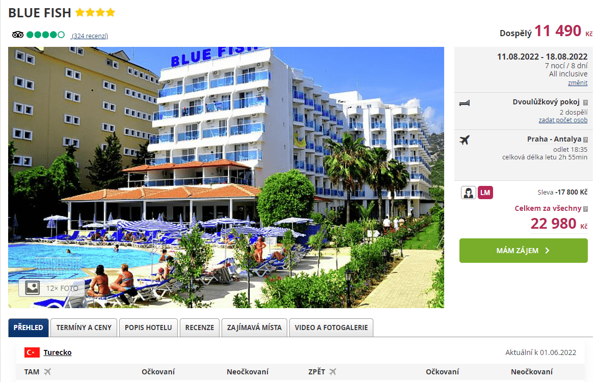Dovolenou v hotelu Blue Fish**** v termínu 11.8. – 18.8. 2022 můžete rezervovat zde >> (recenze hotelu najdete zde >>)