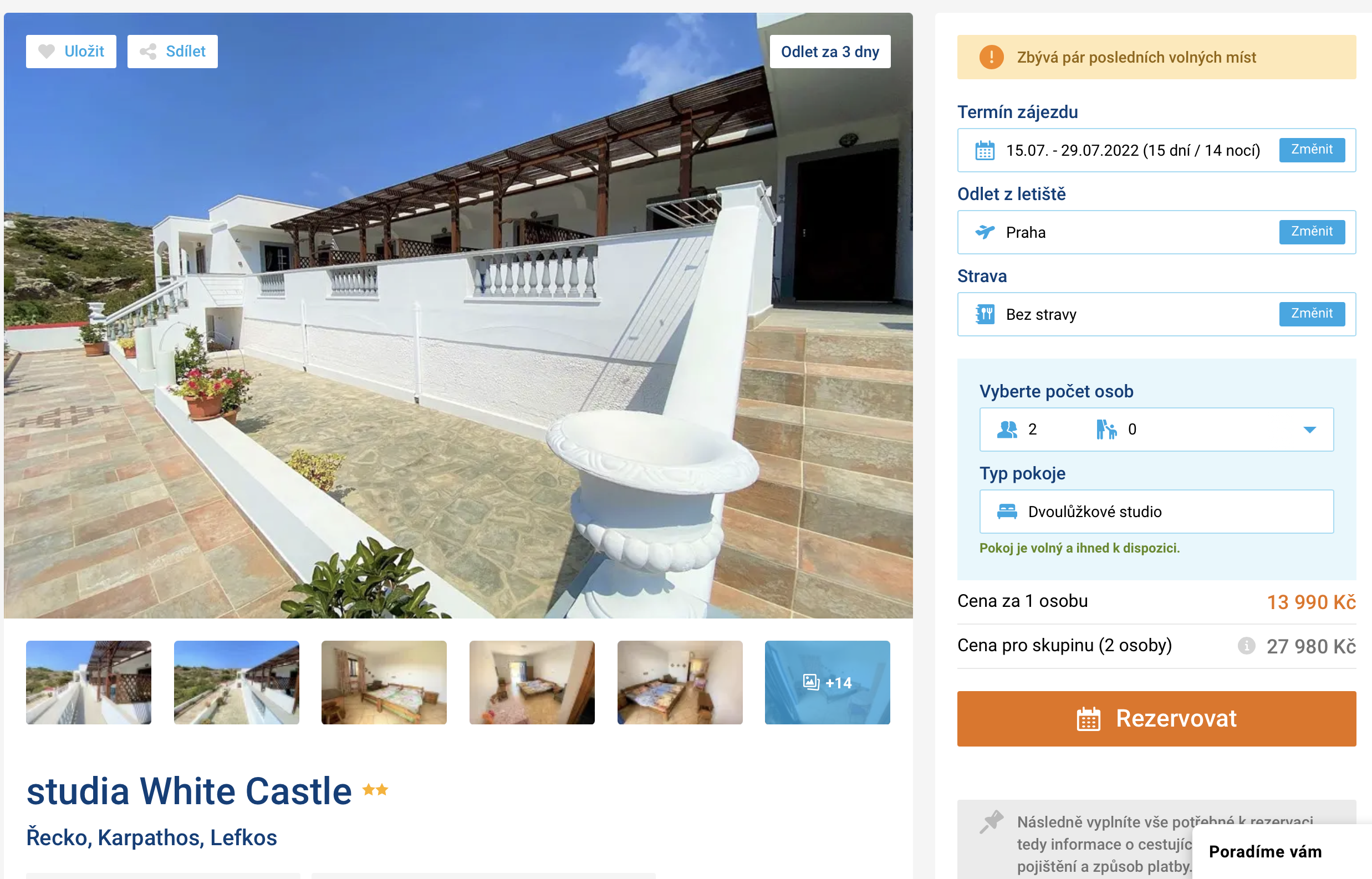 Láká vás dovolená na řeckých ostrovech? S naším dalším dnešním tipem si můžete dopřát pořádně dlouhou dovolenou na řeckém ostrově Kapathos! Zájezd do letoviska Lefkos na 15 dní můžete aktuálně pořídit za cenu 13 990 Kč. V této ceně jsou zahrnuty letenky (s odletem z Prahy), letištní transfery v místě, ubytování na 14 nocí a služby delegáta. Skvěle hodnocené ubytování s rodinnou atmosférou se nachází asi 5 minut od pláže. Před cestou nezapomeňte načerpat inspiraci v našem podrobném průvodci tímto ostrovem.