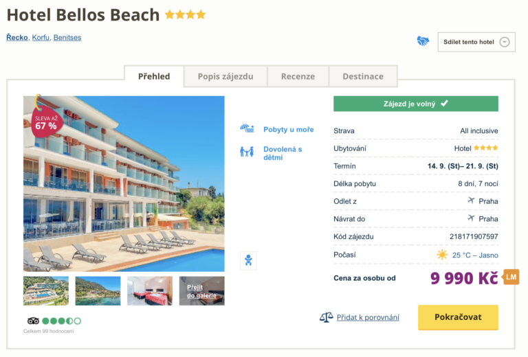 Zájezd do hotelu Korfu Bellos Beach v termínu 14.9. – 21.9. 2022 můžete rezervovat zde >>  (recenze hotelu najdete zde >>)
