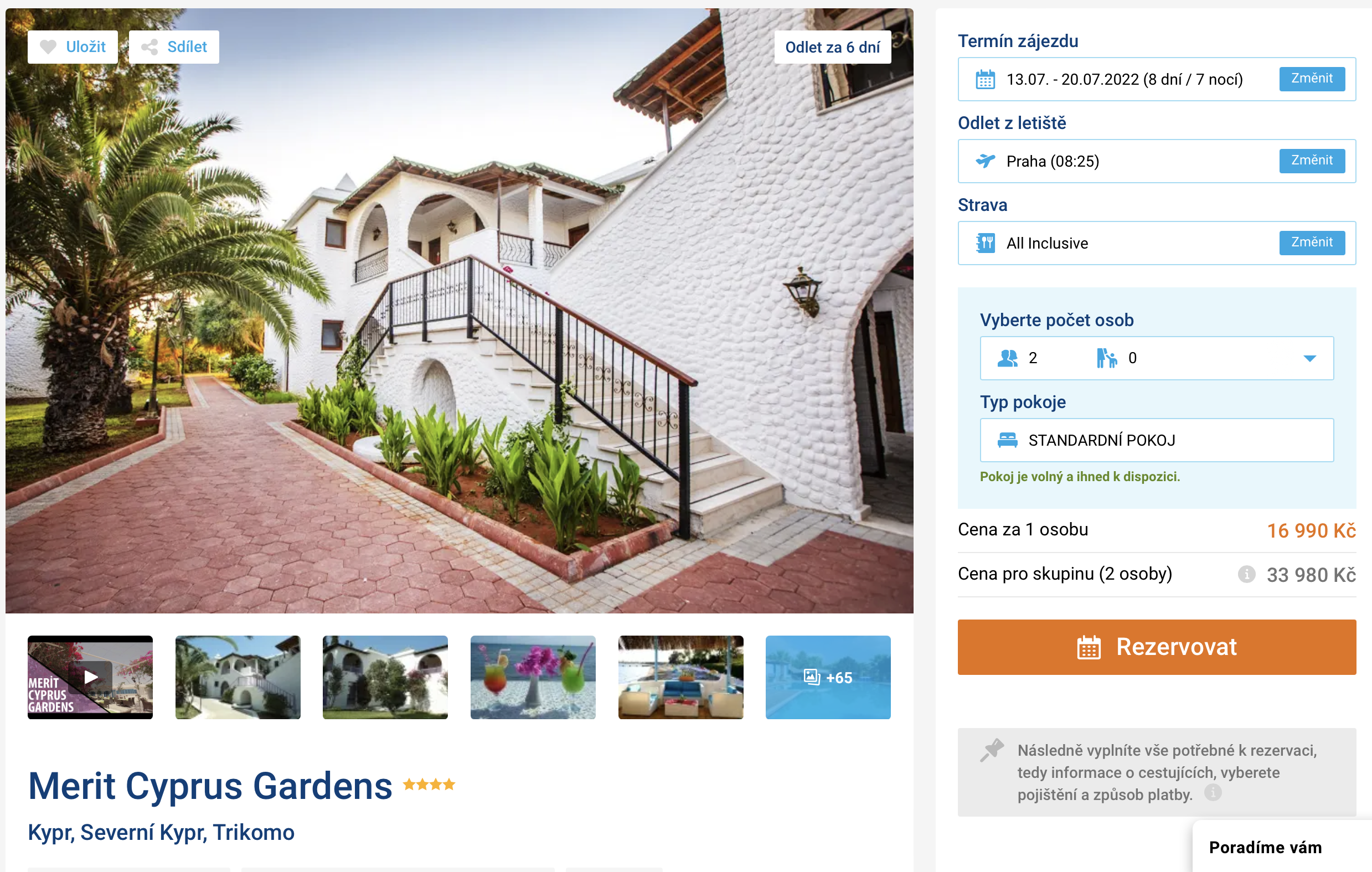 Láká vás návštěva Severního Kypru? Inspirujte se naším dnešním tipem a dopřejte si dovolenou ve skvěle hodnoceném 4* hotelu v letovisku Trikomo. Hotel se nachází přímo u písečné pláže s pozvolným vstupem, na které můžete zdarma využívat lehátka i slunečníky. Zájezd je aktuálně nabízen za cenu 16 990 Kč. V této ceně jsou zahrnuty letenky (odlet z Prahy), letištní transfery v místě, ubytování na 7 nocí, all inclusive strava a služby delegáta. Tipy na výlety a informace o jednotlivých letoviscích najdete v našem online průvodci Kyprem.