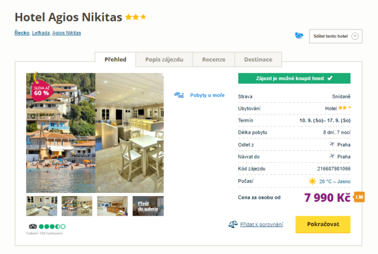 Již delší dobu máte v hledáčku Lefkadu? Na tento malebný řecký ostrov se můžete vydat již za pár dní. Dopřejte si týdenní relax na nádherných plážích, omývaných tyrkysově modrými vodami Jónského moře. Dovolenou pořídíte za 7 990 Kč a to se vyplatí! Cena zájezdu zahrnuje zpáteční letenky z Prahy, letištní transfery v místě pobytu, ubytování v hotelu na týden se snídaní a služby delegáta. Před cestou nahlédněte do našeho online průvodce ostrovem, ve kterém se dočtete spoustu zajímavých informací.
