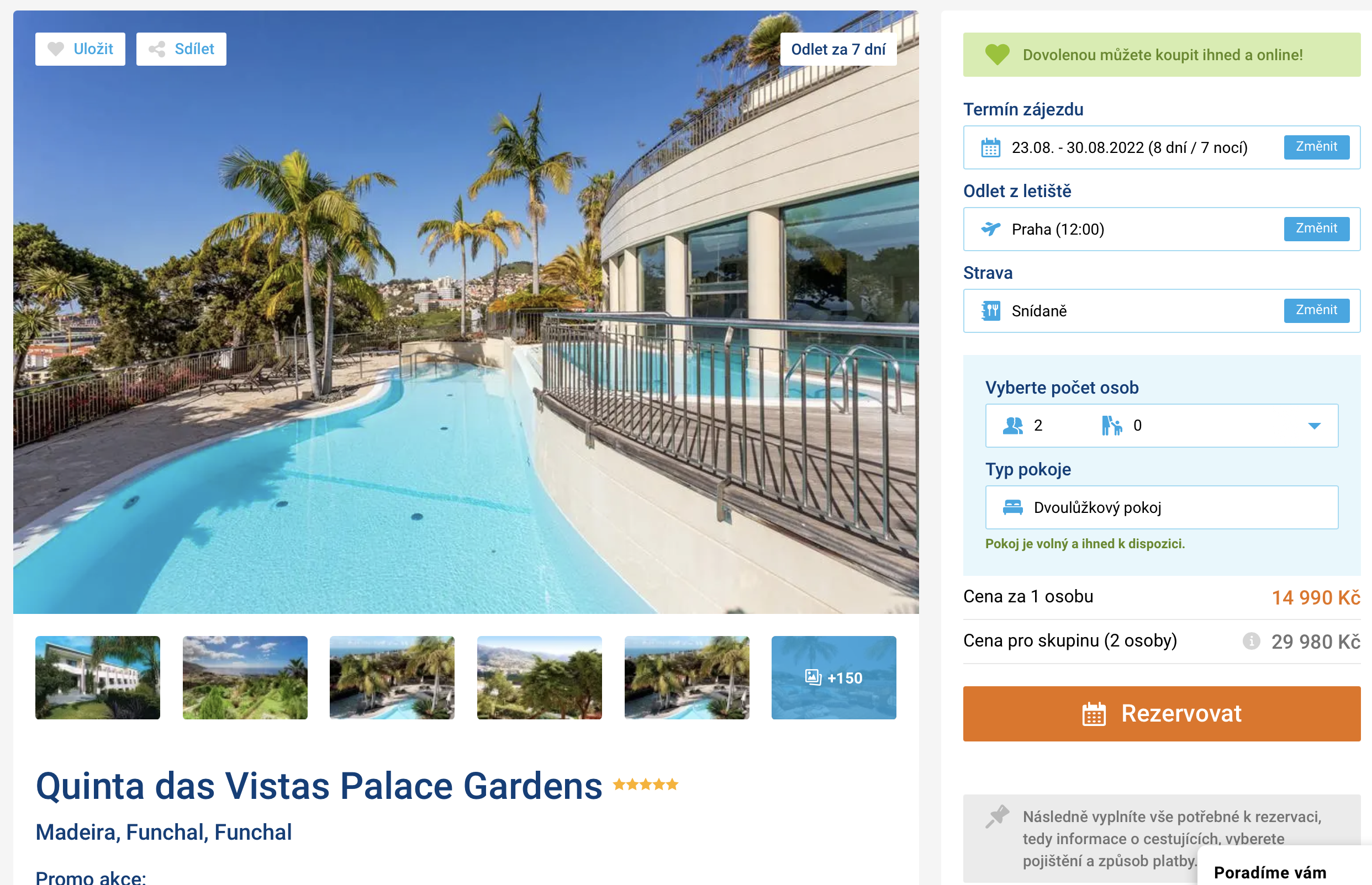 Dovolenou v hotelu Quinta das Vistas Palace Gardens v termínu 23.8. – 30.8.2022 můžete rezervovat zde >>