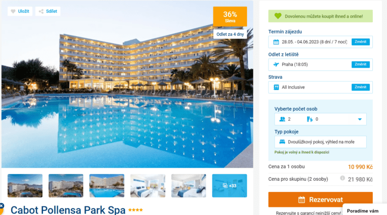 Ještě stále nevíte, kam letos pojedete na dovolenou? Co takhle Mallorca a hotel Pine CLub. Ten mimo jiné disponuje vlastním Spa centrem, restaurací se středomořskou kuchyní, či půjčovnou kol. Děti se mohou těšit na bohatý animační program a vodní Splash park. Díky akci cestovní kanceláře navíc nebudete za dovolenou platit více, než je nutné. Pobytový balíček vyjde na 10 990 Kč a zahrnuje ubytování v hotelu se stravou All Inclusive, zpáteční letenky z Prahy, letištní transfery a služby delegáta. S nákupem proto nečekejte, tipujeme, že se v katalogu příliš dlouho neohřeje.
