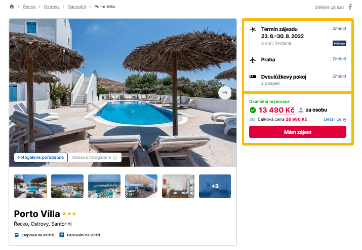 Líbilo by se vám závěr prázdnin strávit na Santorini? Potom je nejvyšší čas na rezervaci pobytu! Pomoci by vám v tom mohla aktualizace ceny zájezdu, o kterém jsme vám již před časem říkali. Nově za dovolenou zaplatíte jen 13 490 Kč a balíček zahrnuje ubytování v hotelu se snídaní na 8 dní, zpáteční letenky z Prahy, letištní transfery a služby delegáta. Hotel Porto Villa 3 leží v klidnější části ostrova, nedaleko malebného přístavu. Před cestou určitě nezapomeňte nahlédnout do našeho online průvodce tímto ostrovem, ve kterém najdete informace a tipy na výlety.