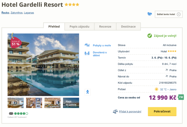Dovolenou v hotelu Gardelli Resort v termínu 3.6. – 10.6. 2022 můžete rezervovat zde >> (recenze hotelu pak najdete zde >>)