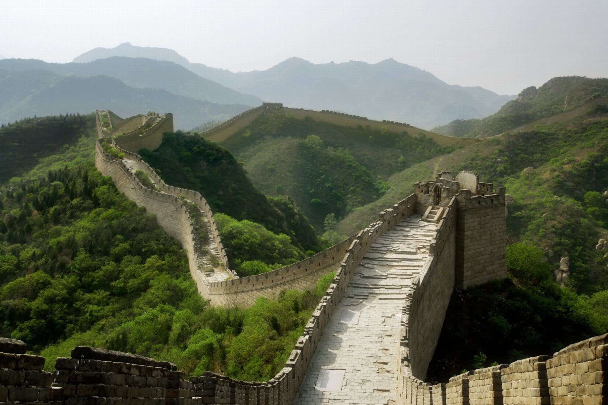 1. Velká čínská zeď je starý systém opevnění táhnoucí se napříč severní Čínou. Čína asi nemá známější památku, než je právě Velká čínská zeď. V dnešní podobě byla vybudována za dynastie Ming v době od konce 14. do začátku 17. století. Jejím účelem bylo chránit Čínu před mongolskými nájezdy. Podobná opevnění proti vpádům kočovných kmenů byla však budována již v dávnějších dobách. Zeď se táhne v ohromující délce cca 6000 km, východní počátek má v Šan-chaj-kuan a končí daleko na západě u Ťia-jü-kuan v provincii Kan-su na pokraji pouště Gobi. Nutno zdůraznit, že zeď v některých úsecích probíhá v několika liniích a vytváří odbočky.