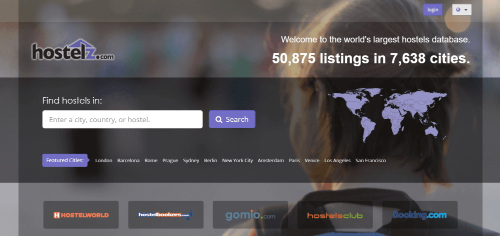 Do vyhledávače na úvodní straně Hostelz.com zadejte město, zemi nebo název hostelu. V případě, že zadáte zemi, zobrazí se vám stránka se základními informacemi o daném státě společně s mapou hostelů a přehledem dostupných měst.