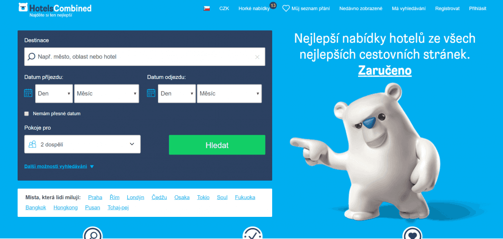 Vyhledávání na hotelscombined.com