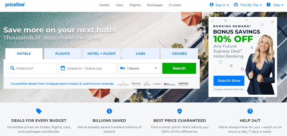 Na stránkách Priceline.com funguje speciální nabídka “Express Deals”, na které můžete ušetřit až 60% z původní ceny hotelů! Jak to funguje?